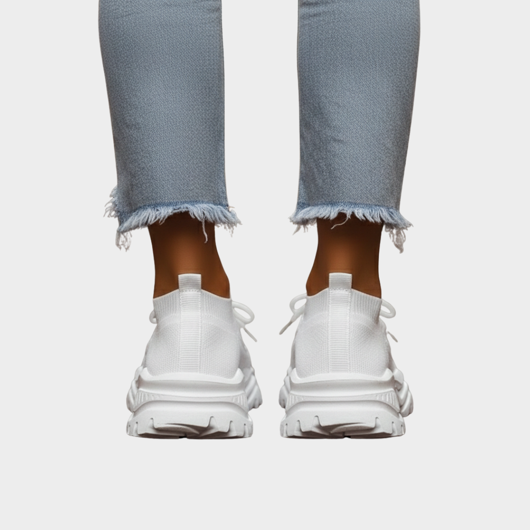 These women’s orthopedic sneakers offer a clean, simple design that pairs with jeans, joggers, and casual outfits. The mesh upper allows airflow, and the supportive sole provides structure for routine walking and standing.